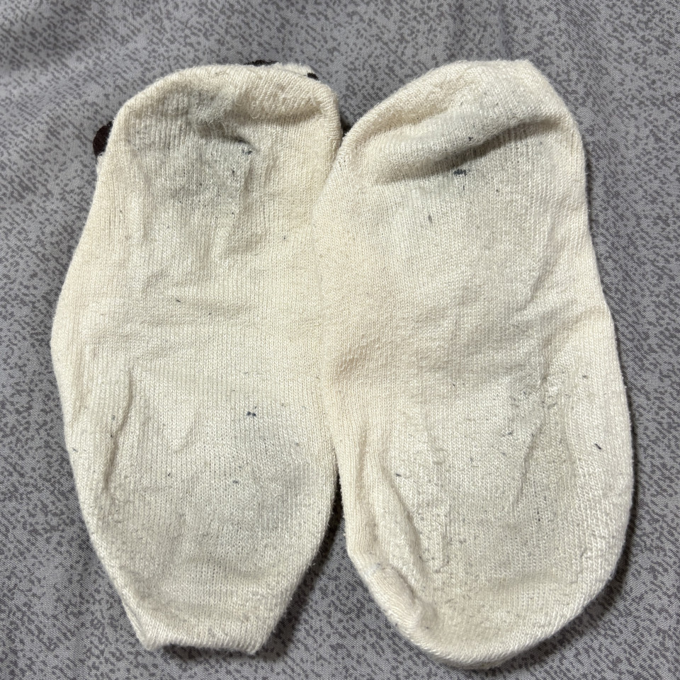 1週間ほど着用した靴下、かなり臭いがあり、ジップロック保存しておりましたが、お迎えがないため、明日着用してお洗濯します。 お迎え考えてくださる方は、ぜひこの機会にお願いします😊