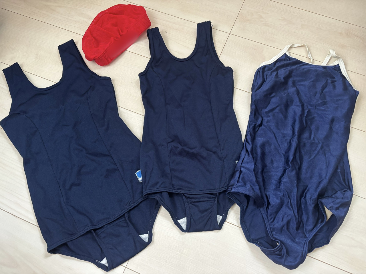 いつ使っていたのか覚えてないんですけど、右側の白い紐の水着のサイズが140って書いてあったから小学生くらいの水着かなって思います!