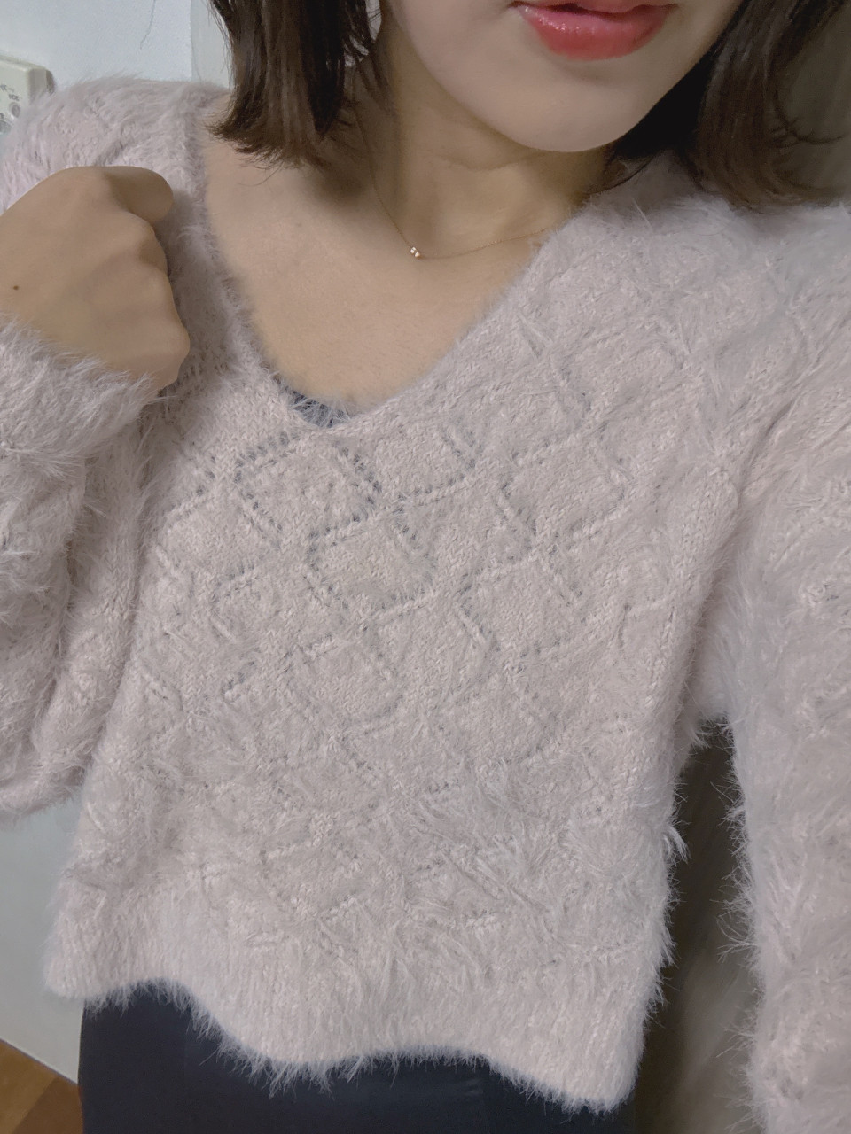 今日はお休みだったので新しく買ったふわふわのニットを着てみました❣️