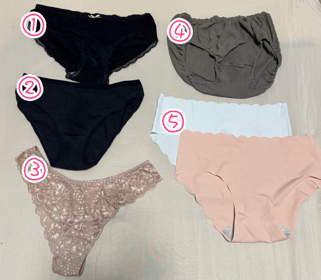 おぱんつ確認用です♡ ①、②、④綿フルバック ③綿Tバック ⑤シームレス