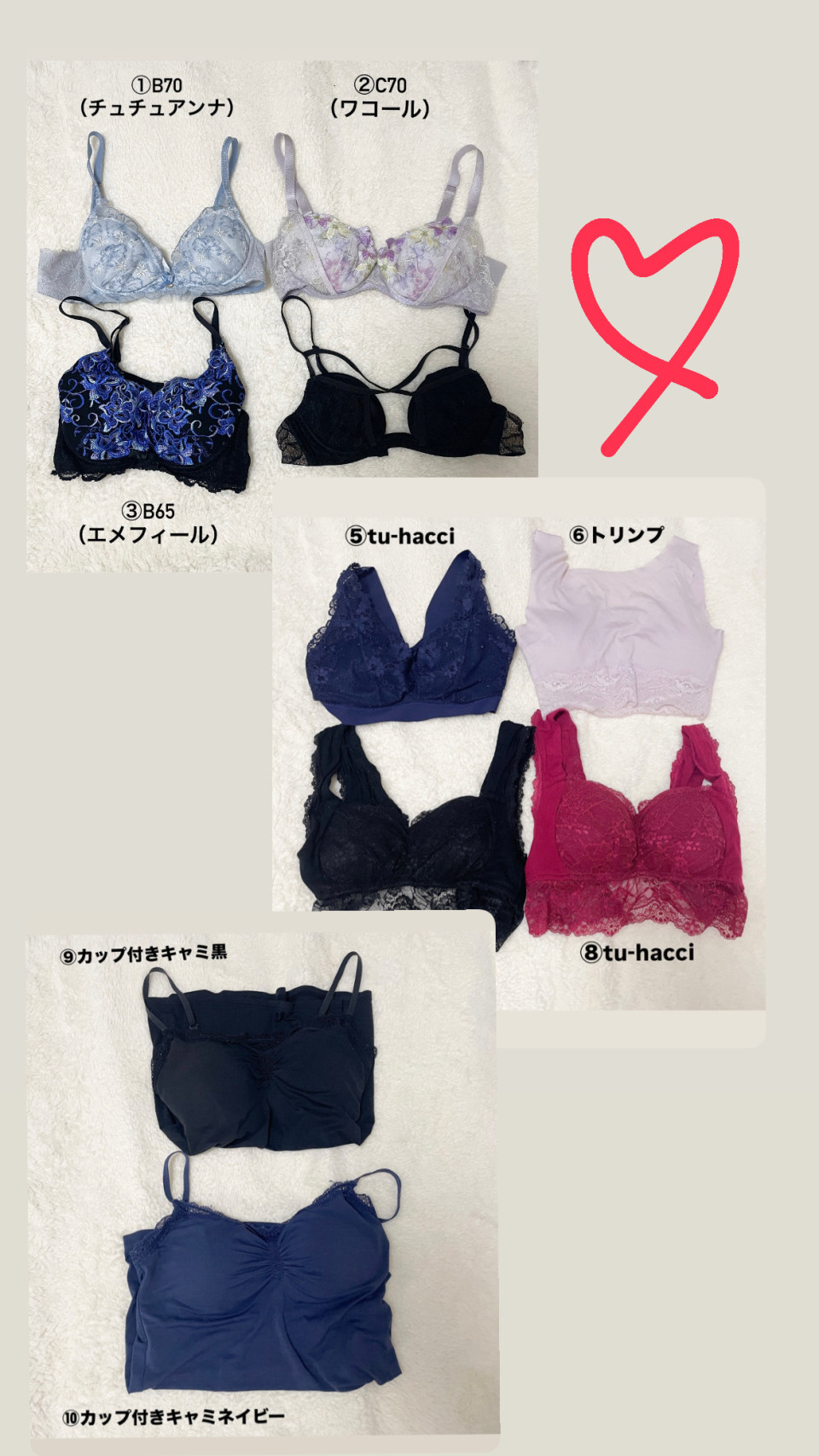 全て1点1000円のブラやキャミやヒートテック出品しました😘