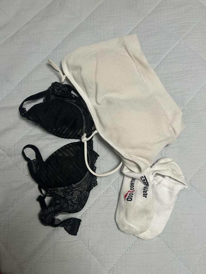・Aカップブラ ・着古したショート丈キャミ ・靴下