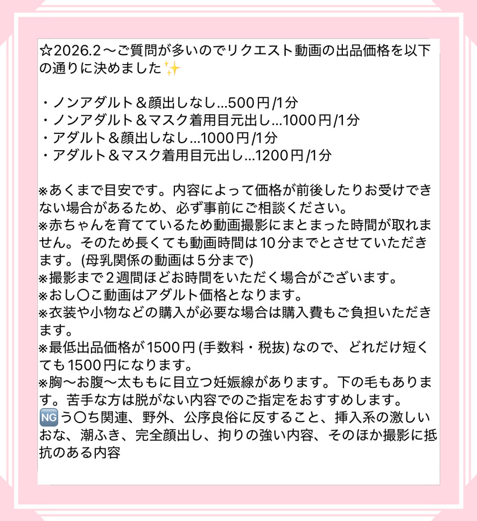 ご質問いただく機会が多いので、リクエスト動画の価格を分かりやすく設定いたしました🌼