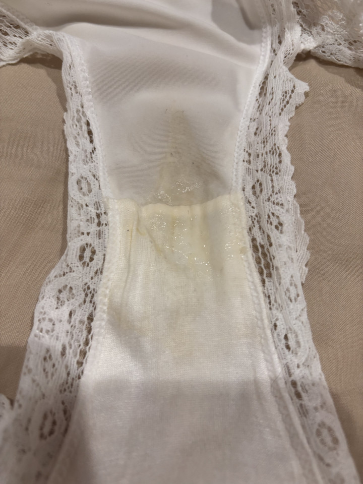 とろとろ付いてきたァ🤭💕 最近とろとろです☺️ 1日着用オナニー1回♡むちむち白レースバックパンティー P30900-00119
