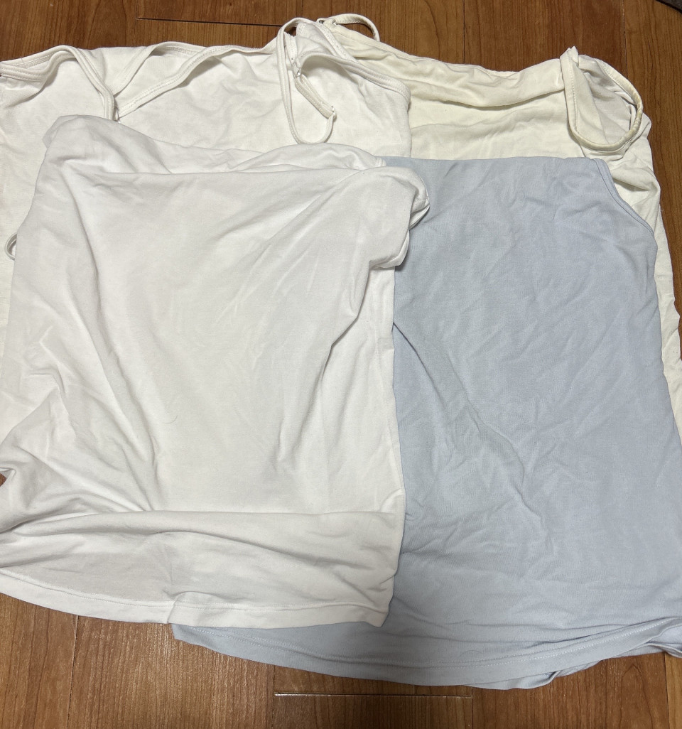 出品しようと思っている物 汗をかくのでキャミソールは脇に汗ジミがあるものもあります 8枚くらいあります🐧 少ないですが長袖のヒートテックも何枚かあります