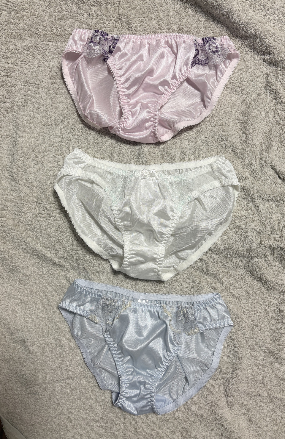 大人気の白パンティー買ったよー🥰♡ 他にもピンクと水色も買ってみました♡ 気になる物があればメール待ってますねっ🥰