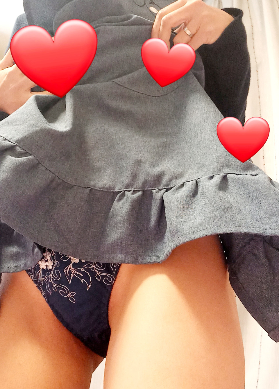お弁当作ったり、洗濯したりと忙しい朝ですが、昨日載せた5枚のうちのネイビーショーツを履いてるのをお知らせしたくてパシャリ📸 1日でどのくらい汚れるかな︎💕︎