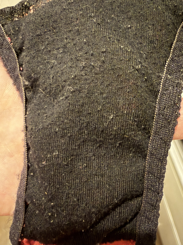黒のクロッチなので上手く写っていませんが、こちらも全体的に毛玉があります。、